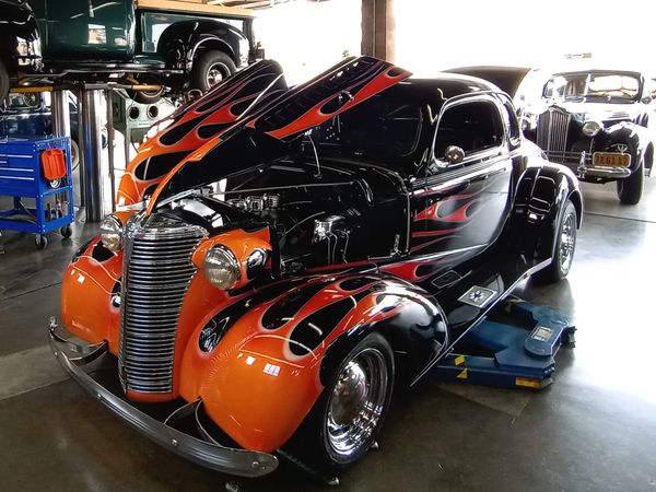 This 1938 Chevy makes a statement no matter where it goes. Suicide doors, widened rear, healthy grunting engine and cherry flames make this car a head turner.